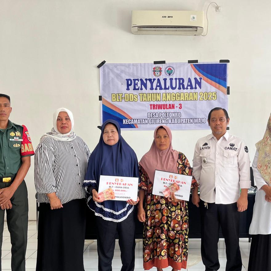 Penyaluran BLT-DD ini dihadiri oleh Camat Gilireng, Kepala Desa Poleonro, Bhabinsa, Bhabinkamtibmas, serta Pendamping Desa. Kehadiran para pihak tersebut menunjukkan dukungan terhadap upaya pemerintah desa dalam menyalurkan bantuan secara tepat sasaran dan transparan.
